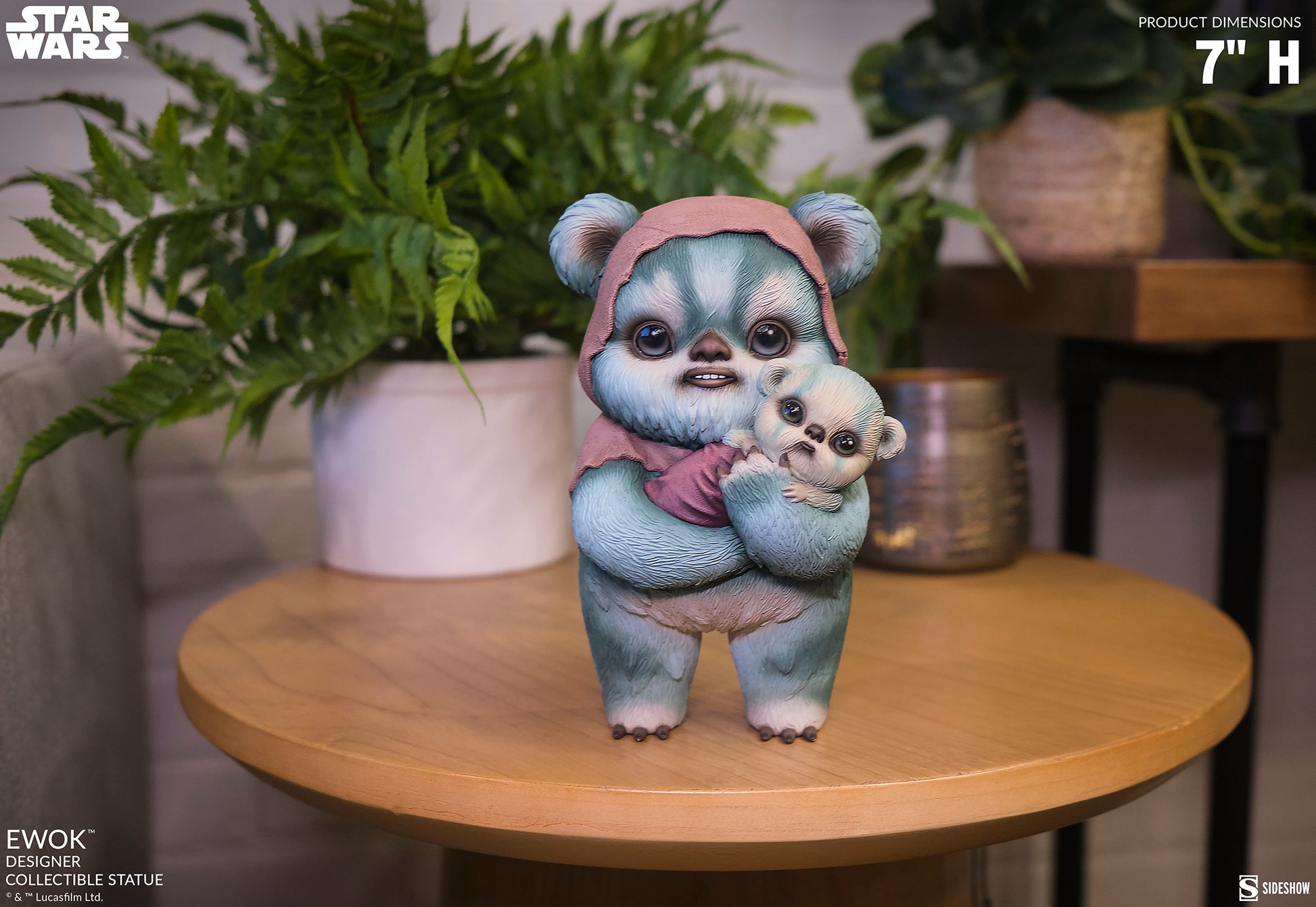 It takes a village to raise a wokling! Measuring 7” tall x 4.5” wide x 4” deep, this charming Star Wars™ collectible perfectly captures the dreamy colors and textures of Graves' signature painting style. Here, an adult Ewok clutches its infant as the pair of forest moon dwellers look out with wide, shining eyes. Soft blue, yellow, and green fur tones contrast with the earthy colors of their cloth garments, sculpted with incredible attention to detail to give the cloak a worn and weathered appearance. The Ewok Designer Collectible Statue also includes a removable black base that attaches to the feet. From head to toe, this stunning Star Wars statue brings a new perspective to the iconic and well-beloved Ewoks that will have you smitten with their adorable appearance wherever you display them.