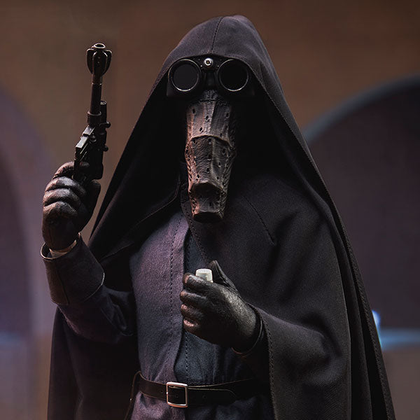 Wrapped in shadows and secrecy, the Kubaz called Garindan sneaks through the Mos Eisley space port looking for the greatest secrets … and the highest bidder. Inspired by the character’s appearance in A New Hope™, this fully articulated, highly poseable Star Wars figure wears intricate cut and sew clothing. His extensive costume includes a hooded black cloak, a cape, and a shirt. Garindan further obscures his identity with accessories such as a dark belt, matching boots, and a masked portrait with affixed goggles. The figure also features two pairs of relaxed hands, as well as alternate hands to pose Garindan holding his blaster or comm link.