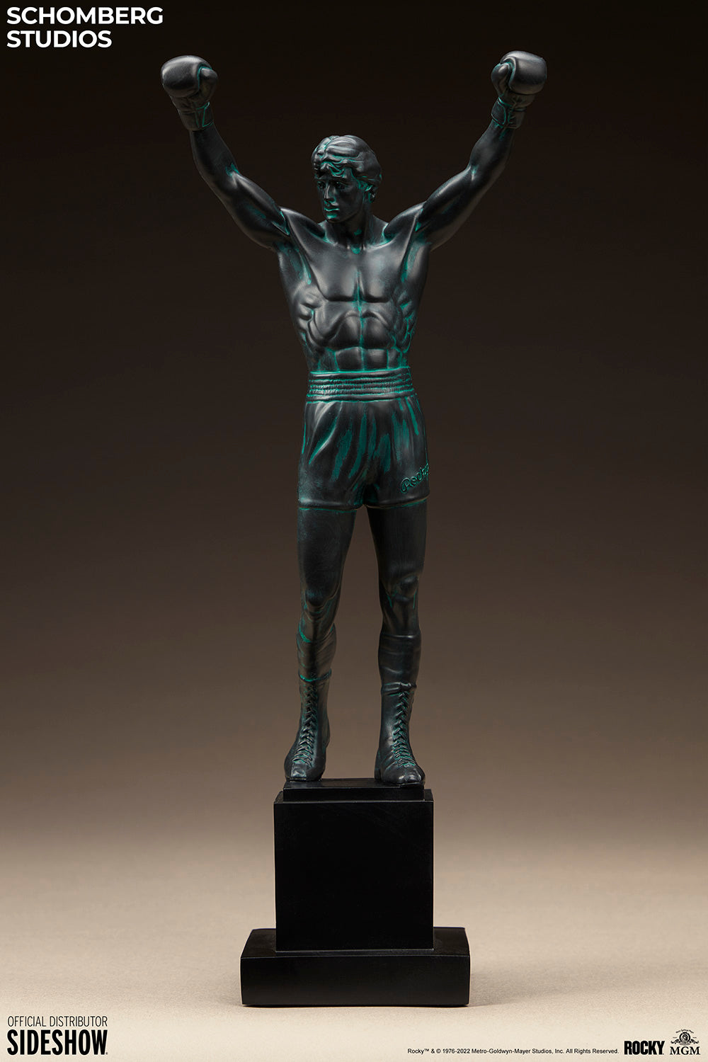 The artist that gave life to the original bronze statue has returned to create a smaller, collectible version of his masterpiece. Sideshow Collectibles is proud to bring you the Rocky Balboa Resin Statue, created and manufactured by Schomberg Studios. Cast in high quality resin, the Rocky Balboa Resin Statue is the perfect way to celebrate your passion for sports and film.