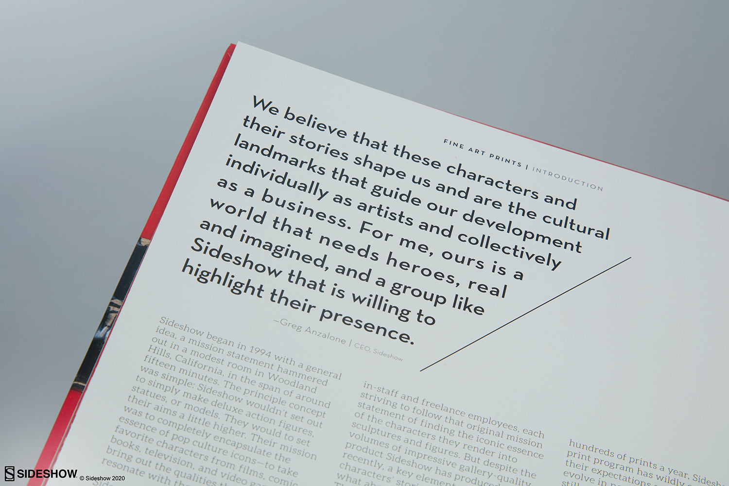 The Sideshow: Fine Art Prints Vol. 1 Hardcover Book details the incredible process and stunning results of this art program from 2014-2016, featuring over 200 pages of concept art, behind the scenes details, product specifications, and artist insights. Experience a collection of gallery-quality illustrations and relive all of your favorite fictional adventures with this must-have book for art enthusiasts and pop culture collectors alike!