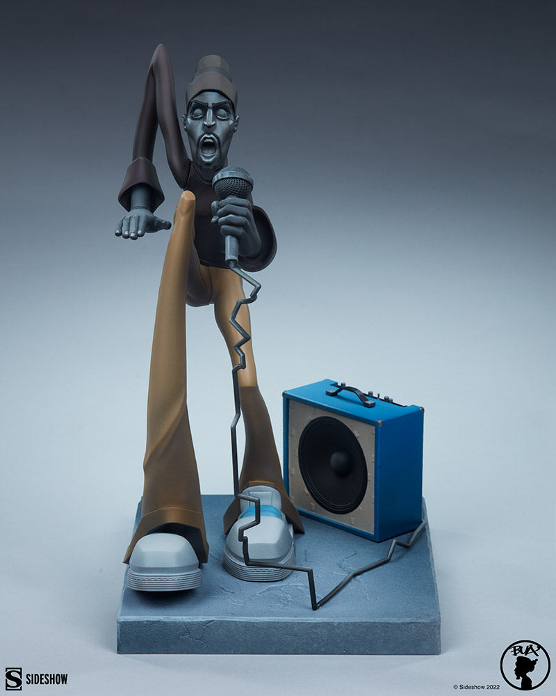 The MC Statue measures 11.5” tall and 7.5" wide as the intrepid entertainer rocks the microphone, spitting rhymes and stepping to the beat of his stereo system. This fully sculpted collectible utilizes a unique forced perspective sculpt and dynamic paint applications to bring BUA’s original illustration to life. As the Master of Ceremonies, The MC stands front and center as a tribute to those Hip Hop wordsmiths who captivate the crowds with lyrical creativity, adaptability, and unwavering energy.